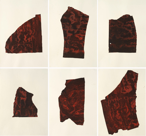 Farbform rot über schwarz, 2020, Acryl, Papier auf Papier, je 70 x 50 cm