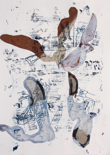 Hof der Zeichen 1, 2011, Acryl, Öllzeichnung, Papier auf Papier, 59 x 42 cm