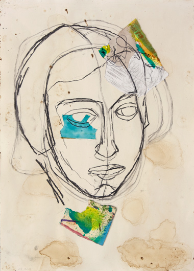 Kopf hell, 2013, Acryl, Kohle, Tusche, Papier auf Papier, 59 x 42 cm