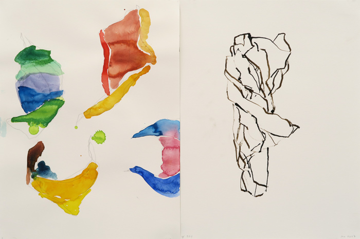 Mit Steinen Schwimmen 9|A 901, 2017, Aquarell, Bleistift, Tusche auf Papier, 32 x 48 cm
