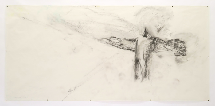 Stehen Liegen, 1981, Kohle auf Transparentpapier, Reißbrettstifte, 110 x 235 cm