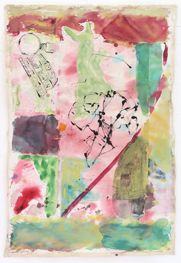 Spielplatz der Füchse 7, 2020, Aquarell, Chinapapier, Tusche auf Leinwandtuch, 130 x 87 cm