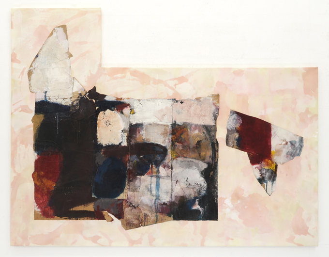 Eingang zu dessen Ausgang, 1976|2022, Acryl, Öl, bedrucktes Papier, Stoff, Papier auf Leinwand, 140 x 180 cm