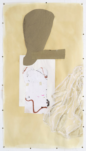Frueh Minoische Serie 3 (Augenbänder und Echoraum 5), 2021, Bleistift, Tee, Tusche, Leinwand, Papier auf Papier, 119 x 67 cm