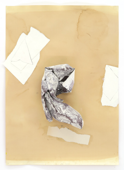 Aquarellkasten der verborgenen Pyramide I, 2023, Tee, Papier auf Papier, Gips, 59 x 42 x 6,5 cm