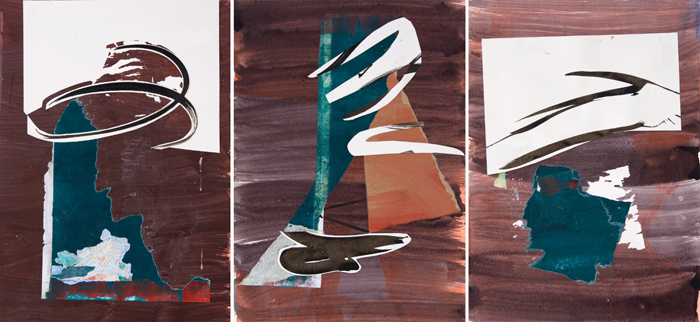 Zeichnung Drei Bogen, 2013, Acryl, Tusche, Papier auf Papier montiert, 50 x 105 cm
