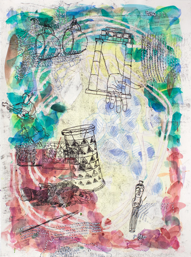 Findkeinkamm 1, 2012, Aquarell, Ölzeichnung, Papier auf Papier, 76 x 56 cm