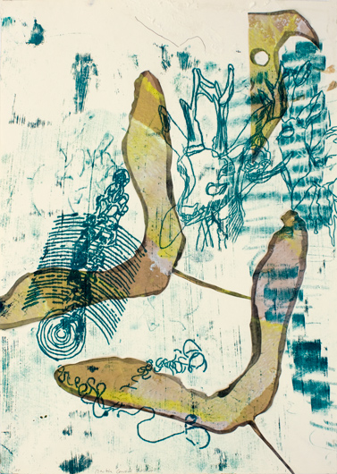 Hof der Zeichen 10, 2011, Acryl, Ölzeichnung, Papier auf Papier, 50 x 35 cm
