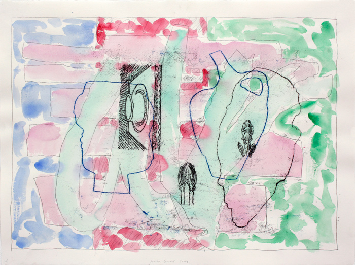Orte und Geister 3, 2014, Aquarell, Ölzeichnung auf Papier, 56 x 76 cm