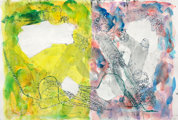 Türen 6, 2012-14, Acryl, Aquarell, Ölzeichnung, Papier auf Papier, 38 x 56 cm