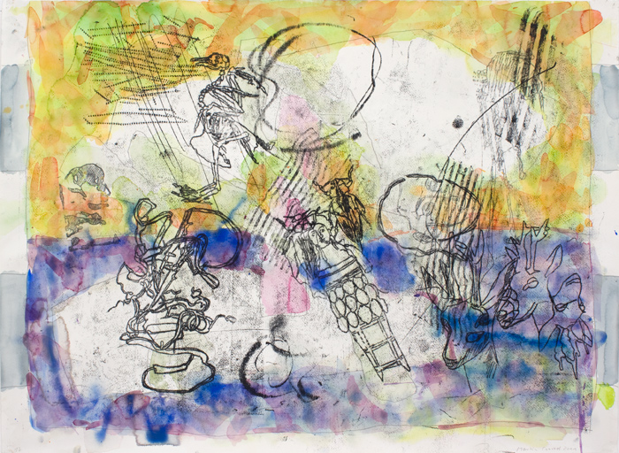 Fünfhändige Winde 17, 2011, Aquarell, Ölzeichnung, Papier auf Papier, 56 x 76 cm