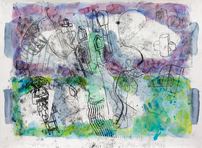Fünfhändige Winde 19, 2011, Aquarell, Ölzeichnung, Papier auf Papier, 56 x 76 cm
