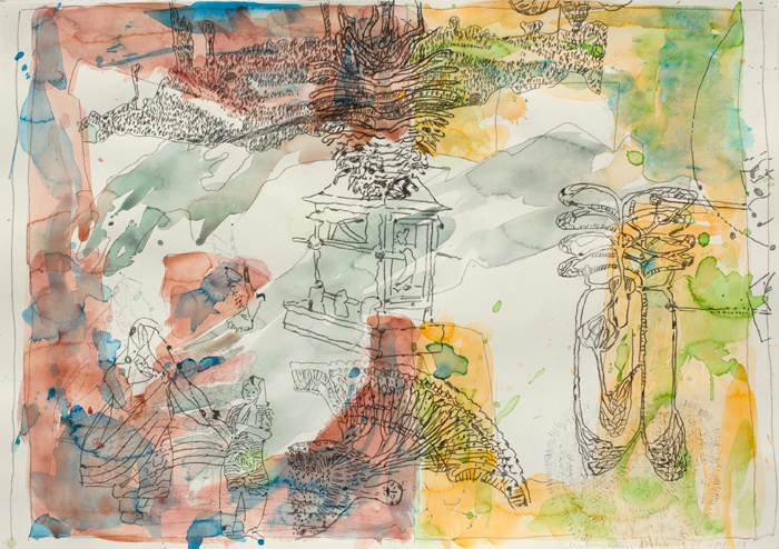 Unternehmen Lichtung /2, 2008, Aquarell, Farbstift auf Papier, 42 x 60 cm