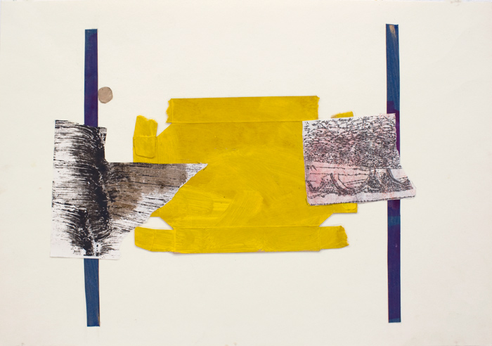 Gelb Mitte, 2011, Acryl, Ölzeichnung, Papier auf Papier, 35 x 50 cm