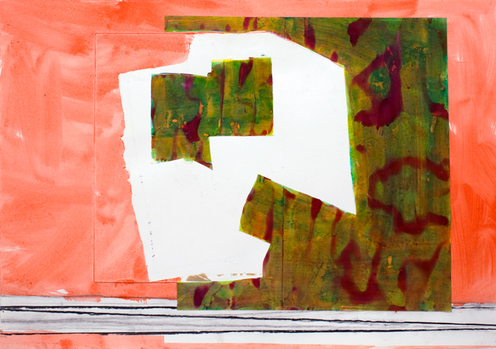 Rot-grün, weiß Mitte, 2011, Acryl, Kohle, Papier auf Papier, 71 x 100 cm