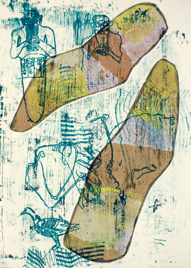 Hof der Zeichen 13, 2011, Acryl, Ölzeichnung, Papier auf Papier, 50 x 35 cm