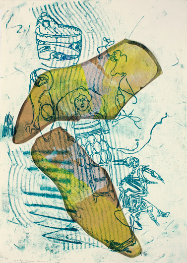 Hof der Zeichen 14, 2011, Acryl, Ölzeichnung, Papier auf Papier, 50 x 35 cm