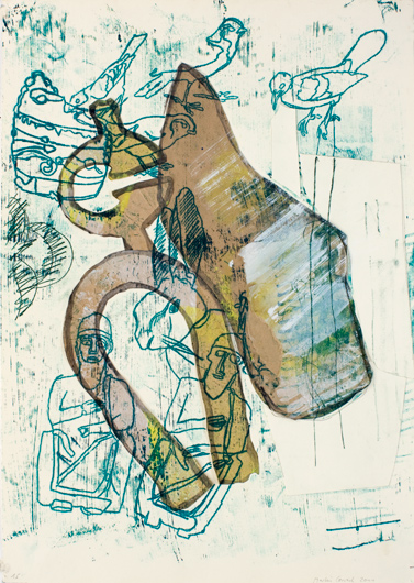 Hof der Zeichen 16, 2011, Acryl, Ölzeichnung, Papier auf Papier, 50 x 35 cm