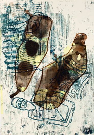 Hof der Zeichen 24, 2011, Acryl, Ölzeichnung, Tusche auf Papier, 50 x 35 cm