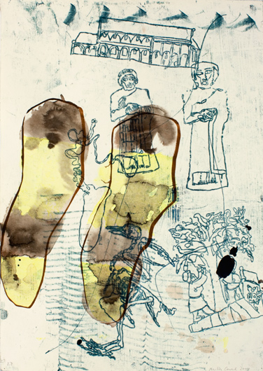 Hof der Zeichen 27, 2011, Acryl, Ölzeichnung, Tusche auf Papier, 50 x 35 cm