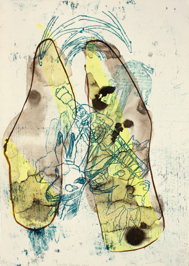 Hof der Zeichen 28, 2011, Acryl, Ölzeichnung, Tusche auf Papier, 50 x 35 cm