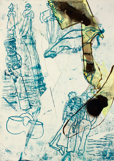 Hof der Zeichen 29, 2011, Acryl, Ölzeichnung, Tusche, Papier auf Papier, 50 x 35 cm
