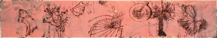 Weg um den inneren Hof 2, 2014, Acryl, Kohle, Ölzeichnung auf Papier, 35 x 200 cm