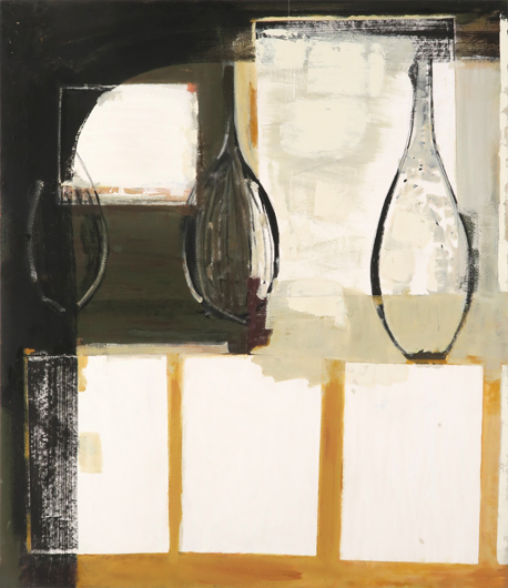 Sodann, 1996, Acryl, Öl, Papier auf Leinwand, 150 x 130 cm
