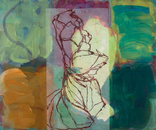 Felder Umschrittenwerden 10, 2017, Acryl, Ölzeichnung auf Leinwand, 100 x 120 cm
