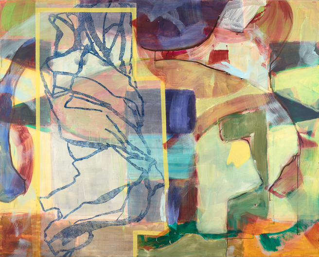 Bäreninseltor 3 /Mit Steinen Schwimmen, 2017-19, Acryl, Ölzeichnung auf Leinwand, 160 x 200 cm