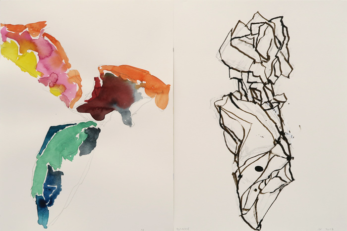 Mit Steinen Schwimmen 13|A 1006, 2017, Aquarell, Bleistift, Tusche auf Papier, 32 x 48 cm