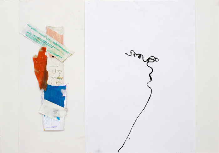 UM 1, 2016, Acryl, Farbkreide, Tusche, Papier auf Papier, 30 x 40 cm