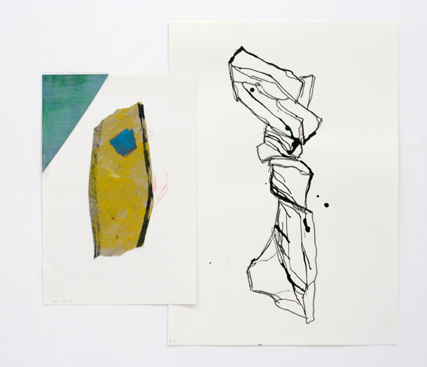 UM 2, 2016, Acryl, Farbkreide, Tusche, Papier auf Papier, 46 x 52 cm