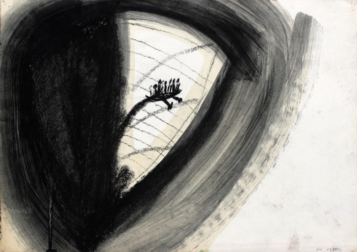Unterirdische Flüsse 1, 1980, Kohle, Öl auf Papier, 21 x 30 cm