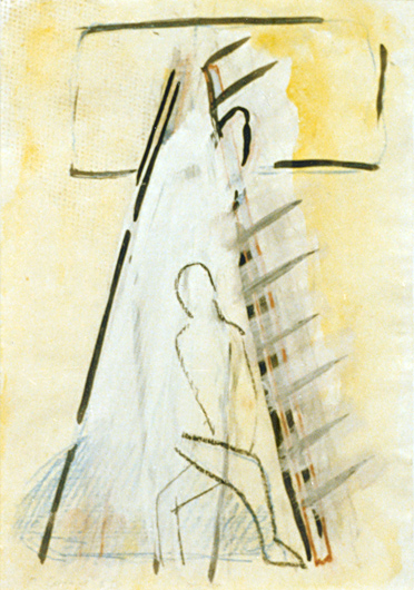 FigurZelt, 1983, Acryl, Farbstift, Rötel, Tusche auf Papier, 30 x 21 cm
