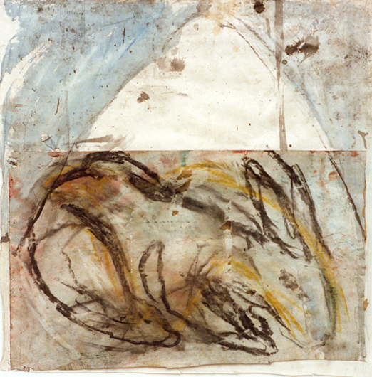 HaseDreieckBlau, 1984, Acryl, Aquarell, Farbkreide, Kohle, Papier auf Papier, 78 x 77 cm