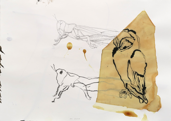 Form, 2020, Bleistift, Kohle, Tee, Tusche, Chinapapier auf Papier, 30 x 42 cm