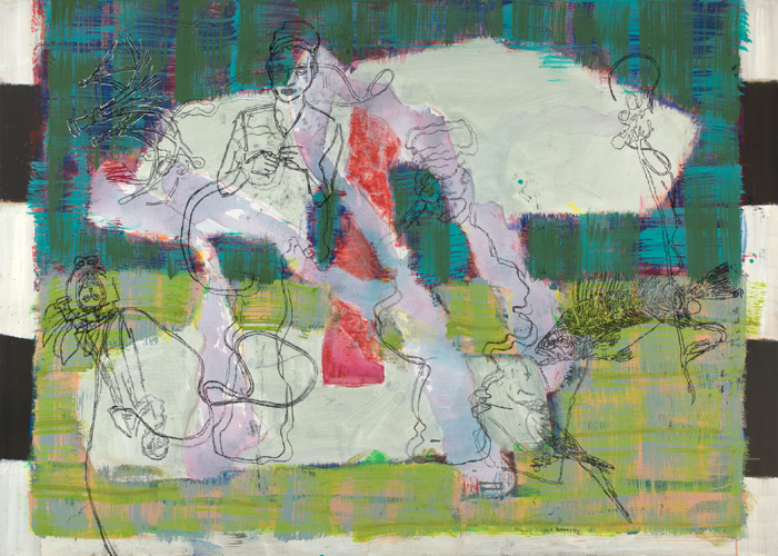 Fünfhändige Winde 1, 2011-12, Acryl, Öl, Tusche auf Leinwand, 100 x 140 cm