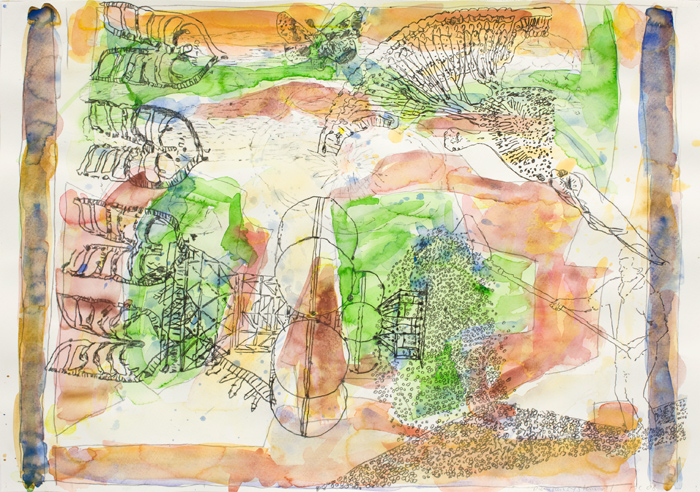 Pumpensystem /1, 2008, Aquarell, Farbstift auf Papier, 42 x 60 cm