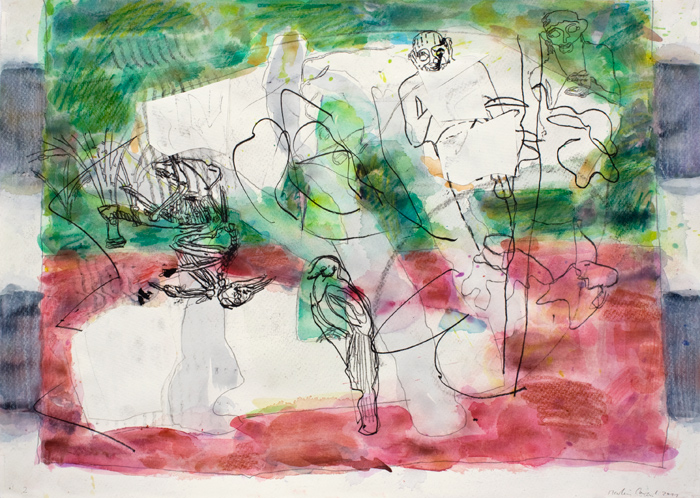 Fünfhändige Winde 2, 2011, Aquarell, Ölzeichnung, Papier auf Papier, 42 x 59 cm