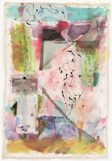 Spielplatz der Füchse 8, 2020, Aquarell, Chinapapier, Tusche auf Leinwandtuch, 130 x 87 cm
