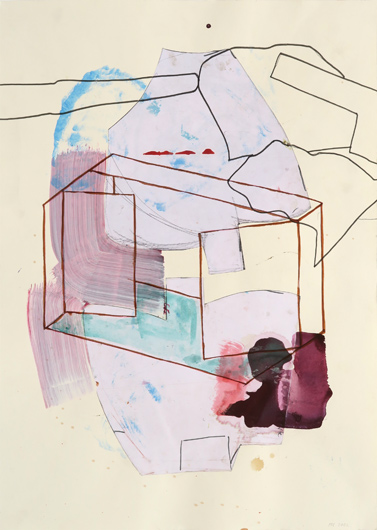 Wie sie die offene Ebene a, 2022, Acryl, Aquarell, Bleistift, Farbstift, Tusche, Papier auf Papier, 70 x 50 cm
