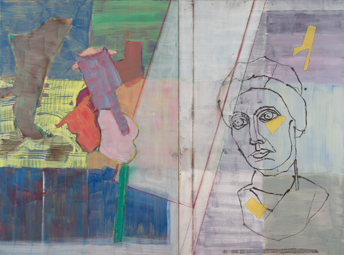 Felder Umschrittenwerden 2, 2016, Acryl, Ölzeichnung auf Leinwand, 100 x 135 cm