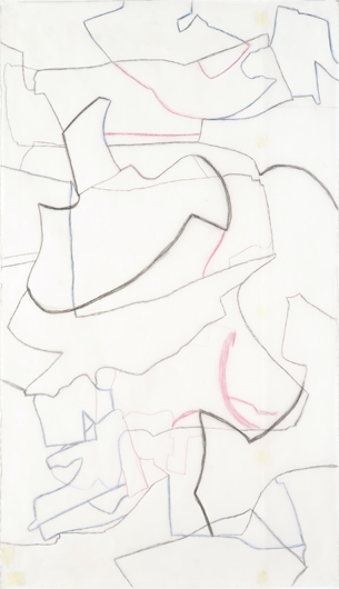 Fragmente, 2019, Farbstift auf Transparentpapier, 140 x 80 cm