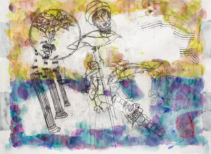 Fünfhändige Winde 8, 2011, Aquarell, Ölzeichnung, Papier auf Papier, 56 x 76 cm