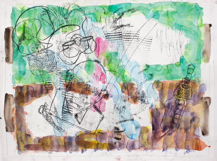 Fünfhändige Winde 9, 2011, Aquarell, Ölzeichnung, Papier auf Papier, 56 x 76 cm