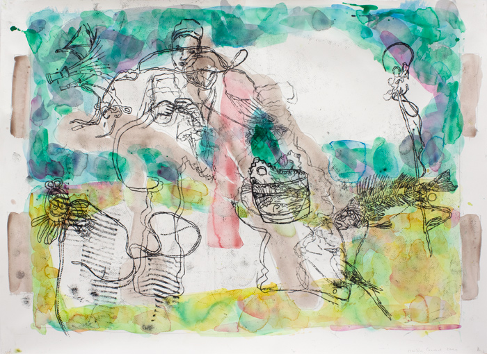 Fünfhändige Winde 16, 2011, Aquarell, Ölzeichnung, Papier auf Papier, 56 x 76 cm