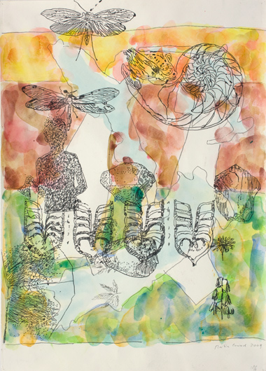 Seines Steigens /16, 2009, Aquarell, Farbstift auf Papier, 60 x 42 cm