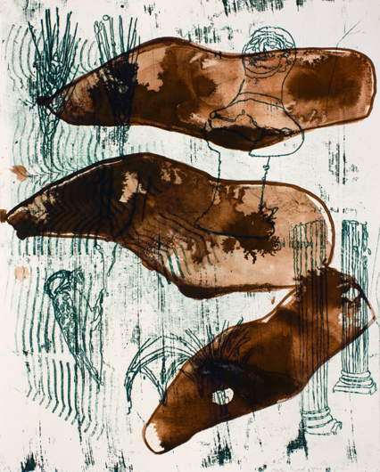 Hof der Zeichen 18, 2011, Ölzeichnung, Tusche auf Papier, 50 x 40 cm
