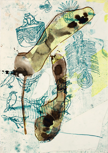 Hof der Zeichen 26, 2011, Acryl, Ölzeichnung, Tusche, Papier auf Papier, 50 x 35 cm